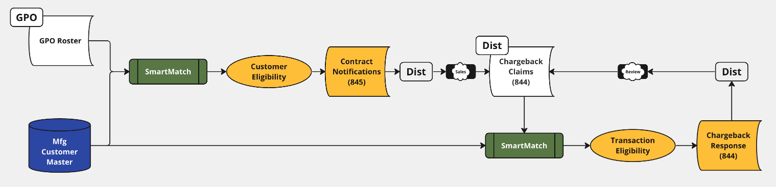 - Evaluate the Distributor Customer Master against the GPO roster to determine Customer Eligibility.
